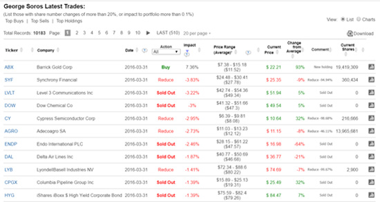 At the beginning of this article we noted that Soros has gone big into American Barrick (ABX), a leading gold producer. As of the end of March it was his single largest holding at 7.36% of his overall portfolio.