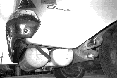 The fuel tank is the single most expensive component, and the hardest to fit. Since my car is LPG-only, I removed the gasoline tank and put the LPG tank there. If you are doing the installation yourself, you'll have to carefully choose a location. Most passenger car and van installations will use ``siamese tanks''; two smaller tanks welded side by side to make a larger, more compact tank. Alas, they are also more expensive. I was able to get one for cheap because the dealer had a stack of them from a contract that fell through. Each installation will be different. Visit the dealer with tape measure in hand. [1994 note: I've noticed that wrecking yards devoted to trucks and commercial vehicles generally have lots of used LPG tanks. Since there's very little market for them you can get 'em dirt cheap. A tank nearly identical to my new $400 tank was available for $50 used. Live and learn. Make sure it's not rusted!] [1998 note: Earlier this year I replaced the 18 gallon tank with a brand new 35 gallon tank (28 gallon fuel capacity). What a refreshing change! At about 14 MPG propane average-worst-case mileage, it gives me a 400 mile range full-to-empty. To do this I had to sacrifice my spare tire compartment, and will locate a "continental kit" type bracket to mount it externally. Since this car is mainly for road trips it's not a problem for me. My next conversion will be to my "new" 1975 Gremlin X V8, where I should be able to fit the same 35-gallon tank and keep the spare inside, too.] With one exception, the LPG fuel tank must be installed outside or under the vehicle, and all hoses outside the passenger compartment. Safety is the issue, and no different than a gasoline-powered vehicle. The one exception is trunk mounting of the LPG fuel tank, especially in sedan-type automobiles with the gasoline tank still in place. In this case, the trunk area {\it must} be sealed off from the passenger compartment with foam, and vents to the outside cut in the body at the lowest point, to allow potential LPG vapors to escape. (There are also tanks and add-on devices to completely enclose the hoses and fittings in a ventable flexible container, such that the tank could be in the trunk safely.) A good start for a new tank is the Manchester Tank Co. in Lynwood, CA. They publish a catalog of their tanks. My new 35 gallon tank cost $595.00 (June 98). The filter/shutoff does what it's name implies. The filter element lasts 100,000 miles, and mainly keeps out junk that may have been in the tank when it was made; the fuel itself is quite clean. Since the fuel is under pressure, the shutoff turns off the fuel when the engine is not operating. The Impco system uses engine vacuum to do this; some models, and the Century brand, use a more complex electrical system. The fuel hose is high-pressure stainless-steel-mesh reinforced neoprene, and the dealer should stock just about any size required. It's fairly expensive, but make sure you get enough -- the only thing worse than too long is too short! Under no circumstances should you run fuel lines -- LPG or gasoline -- through the passenger compartment. You will also need a handful of connectors for the hose. They are easy to install -- after cutting the hose-end nice and square and clean, you screw on the outer part counter clockwise first, then screw the inner part into that, tighten snugly ( Before and after photo here (9K).). The carburetor is fairly easy to install. You'll get an adapter to fit the intake manifold and the throttle lever is made to accommodate a custom fit. It took me a few hours to lay it all out, and make a throttle linkage with hand tools. Last but not least -- the fuel gauge. You can use your existing in-dash fuel gauge. There is a wide range of tank sender units to fit most cars, that connect to the original wiring and work in the usual manner. A 90-Ohm unit fits most cars. You'll also need a fistful of sheet metal screws and plumbers tape, for mounting the fuel hose to the car. A decently stocked ``junkbox'' helps, though most everything else you'll need will come with the components you buy. Overall view of the engine compartment (38K). The convertor/regulator (a) and filter/shutoff (b) are visible on the right inner fender, and the carburetor (c), in the foreground, has it's air filter in place. Figure out where the LPG components will go. Placement isn't critical, but you will want to keep these things in mind.