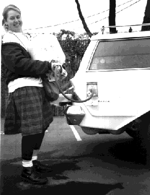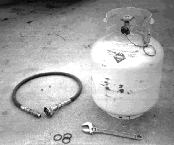 1. Fill the portable LPG container normally. 2. Connect the hose to the portable LPG container. 3. Connect the fuel filler to the car. 4. Turn the portable container upside down. 5. Open the LPG container valve while holding the tank upside down. Close the valve when you've dispensed enough fuel, or the hissing (indicating fuel flowing from the can to your car) stops. (When dumping gasoline into a car tank, gravity moves the fuel, and the air displaced by the liquid gasoline simply flows out the filler neck. Not so with LPG -- at a filling station, LPG is forced into the tank with a pump, with the vent open to detect a full tank.) When you open the valve at step 5 above, the pressure in the gas-can will force LPG into the car's tank, until the pressure is the same in both tanks. Luckily -- the car tank is so much larger than the gas-can that nearly all the LPG will enter the car tank. With my 20 gallon car tank empty, and a 5 gallon gas-can containing 4.5 gallons (its maximum capacity), about 4 gallons of fuel are delivered into the car's tank. For added safety and to prevent loss by leakage or the valve opening, I disconnect the adapter hose from the tank, storing it in a plastic bag to keep it clean, and install a brass plug in the tank, and tighten it. Even if the valve is opened, LPG will not escape. I keep a 5 gallon tank bungie-corded in the back of the car, with room for a second on long trips. I also use the same can for campsite-cooking! Here's some things you might want to keep in the car: A 10 inch adjustable or 7/8 inch open-end wrench, for the gas-can hose fitting. At the least, you'll need one to remove the gas-can hose when you fill the can. Get a bunch of spare O-rings for the filler neck. They are cheap to replace, and will eventually wear out, and I had mine fall out once after a fill up. Without one, you won't be able to fill the tank! Store the gas-can hose in a plastic bag to keep it clean. Here's a breakdown of costs from my receipts for this project. I've arranged the tables with the major, not-optional items at the top. If you can scrounge hose and connectors and other useful doodads obviously you could save a lot of money. The following items are essential, but probably scroungeable to some degree. You might also check truck junkyards, as many commercial and fleet vehicles use LPG. Used equipment is fine, as long as it is undamaged. (Prices are from 1990)