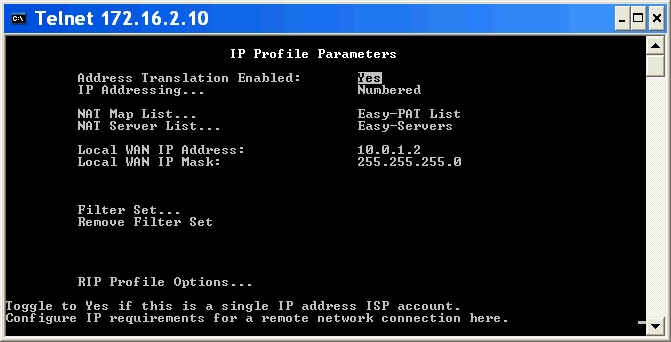 ====================================================================== Here's how we _usually_ do it. We do alot of different setups, but this is our common one... We have two 7100 routers and a router going upstream. Use a paper clip or screw driver to blank the config... the Netopias have _alot_ of config, so we want to start with a blank slate. Use a monospaced font to read this... Mystery Router Netopia Netopia (Gateway)------------LAN----------7100----DSL(WIRE)-----7100 200.200.200.1/24 CO Side CPE Side 200.200.200.3/24 200.200.200.4/24 The customer router is the CPE (Customer Premise Equipment) The CO side is unnumbered, no NAT, no DHCP, WAN and LAN address is 200.200.200.3, gateway is 200.200.200.1, remote address is 200.200.200.4 The CPE side is numbered, and usually uses NAT. The WAN address is 200.200.200.4, the remote address is 200.200.200.3 and the gateway is 200.200.200.3. I normally turn off _all_ RIP. No fancy routes, just default route in each router. No static routes needed in the mystery router. It's my understanding that the CO router does some sort of proxyARP, and listens and forwards packets to the CPE it hears from the gateway, but I could be wrong. All I know is it works, and is a helluva lot easier to set up than a pair of Flowpoints. I also have run those Netopia 7200's without a DSLAM, but it's very difficult. I want to know is this... how do you use the M7100 DSL modems with a CopperEdge 150? I got 4 of 'em collecting dust. If this doesn't work, email me privately. I think we have a step by step guide I can email you back. ----Steve Stephen Amadei Dandy.NET! CTO Atlantic City, NJ http://isp-lists.isp-planet.com/isp-dsl/0305/msg00276.html | |||||||||||||||||||||||||