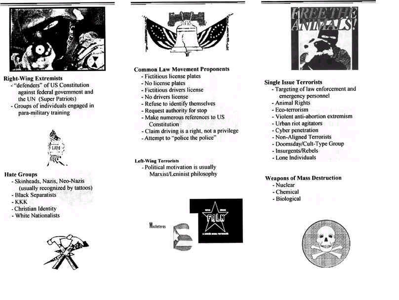 The Phoenix Federal Bureau of Investigation created this flyer during Clinton's Presidency, asking the recipients to help them fight domestic terrorism. It has been confirmed by many phone calls to the FBI and Phoenix local law enforcement that such publications were being given, by the FBI, to local law enforcement. It was not intended for the general public to know such FBI domestic terrorist definitions. "Defenders of the Constitution" are listed as potential terrorists. Do you fit the domestic terrorist profile?