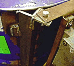 Detail showing how the motor is fitted to a plate mounted to two of the steel angle uprights. |