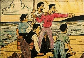 And as the vague silhouette proved itself to be, in fact, the outline of a shore, the figures on the raft danced with joy.