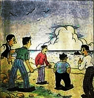One evening when our boys were sitting on the beach going over their problem for the hundredth time, they suddenly saw approaching, a small boat with a solitary man at the oars. They learned that he was the only survivor of a wreck. His name, Olivier.