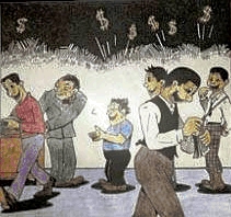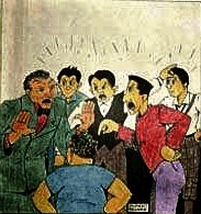 Harry decided to demonstrate this to his friends and to unite them for action. He started with Jim, who was not hard to convince. "I'm no genius", he said, "but for a long time now there's been a bad smell about this banker's system."