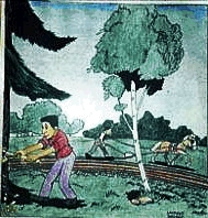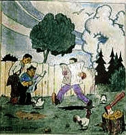 Furious, Frank raised his axe. But already the banker had taken to his legs in full flight towards the forest.